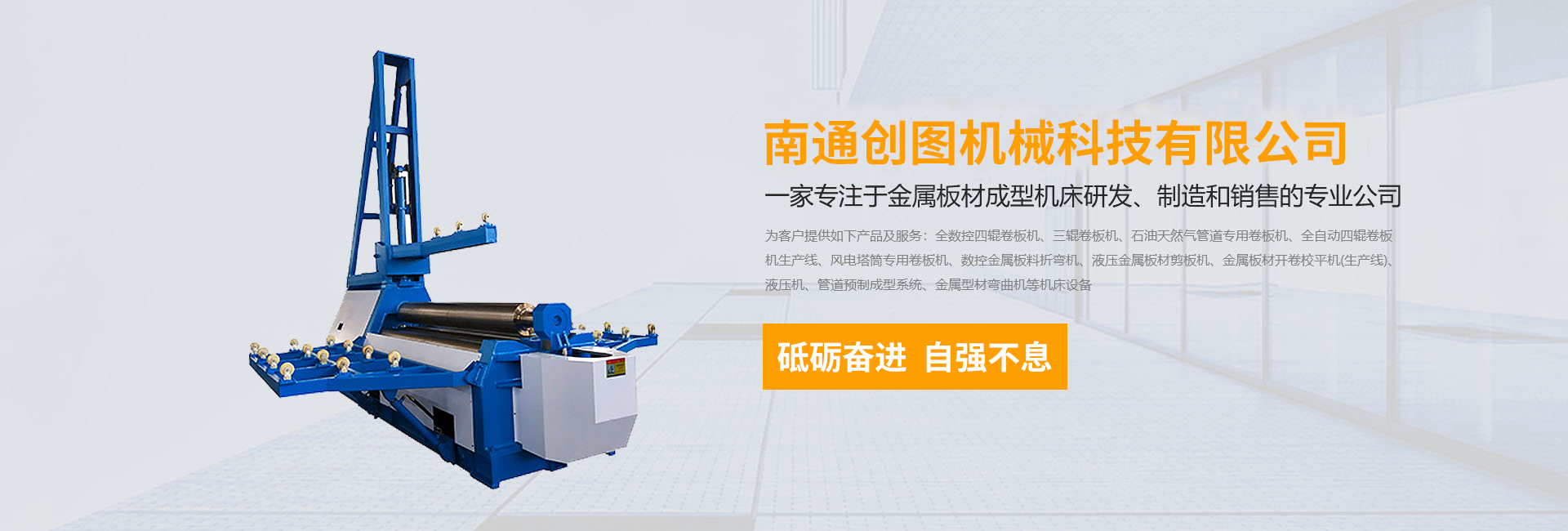 數(shù)控折彎機(jī),剪板機(jī),刨槽機(jī),全數(shù)控四輥卷板機(jī)、三輥卷板機(jī)、石油天然氣管道專用卷板機(jī)、全自動(dòng)四輥卷板機(jī)生產(chǎn)線、風(fēng)電塔筒專用卷板機(jī)、金屬板材開卷校平機(jī)(生產(chǎn)線)、液壓機(jī)、管道預(yù)制成型系統(tǒng)、金屬型材彎曲機(jī)等機(jī)床設(shè)備,公司以精湛的設(shè)計(jì)能力,雄厚的加工制造能力,完善的售后服務(wù)能力,產(chǎn)品暢銷國內(nèi)20多個(gè)省、直轄市,并遠(yuǎn)銷德國、阿根廷、俄羅斯、印尼、伊朗等30多個(gè)國家和地區(qū)。